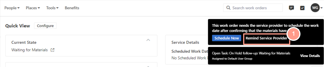 If you have no idea about the availability of the service provider, click the Remind Service Provider on the upper right corner of the page.