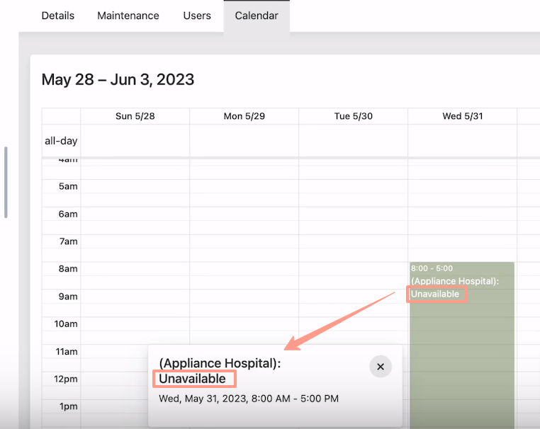 You can view the work order details if it’s for your company, but if the Service Provider has another work order for a different company, the calendar will show a gray-out field with an Unavailable label on it.